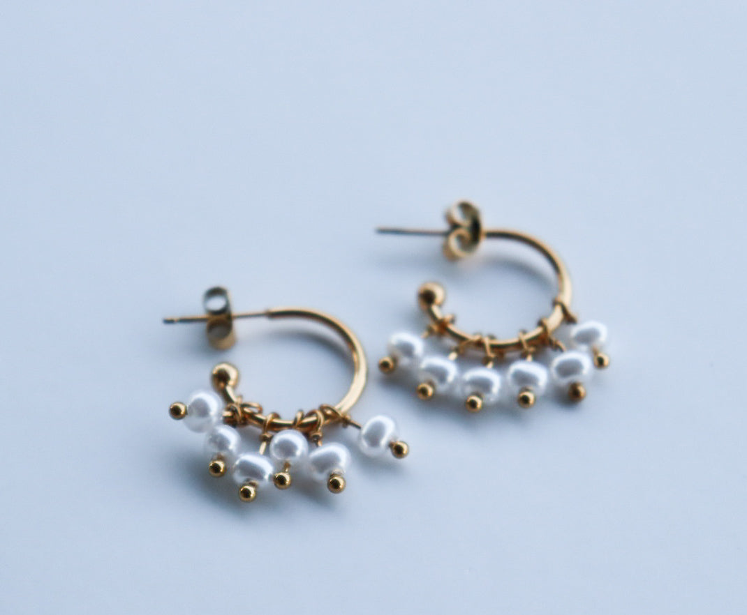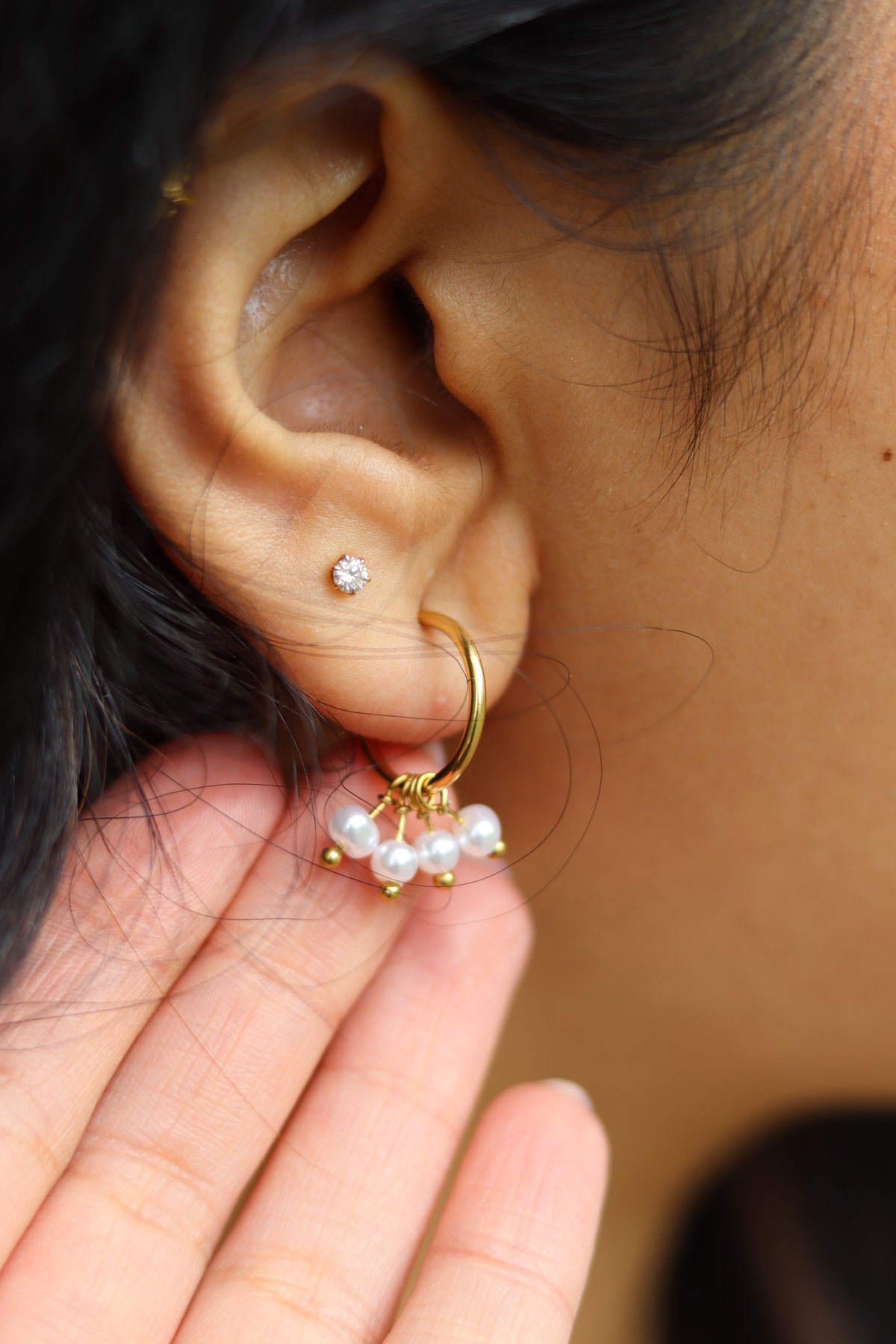 Elevate your elegance with Zara Earrings – exquisite hoops adorned with high-quality pearls, plated in luxurious 18k gold. Tarnish-free and hypoallergenic for timeless beauty and comfort.