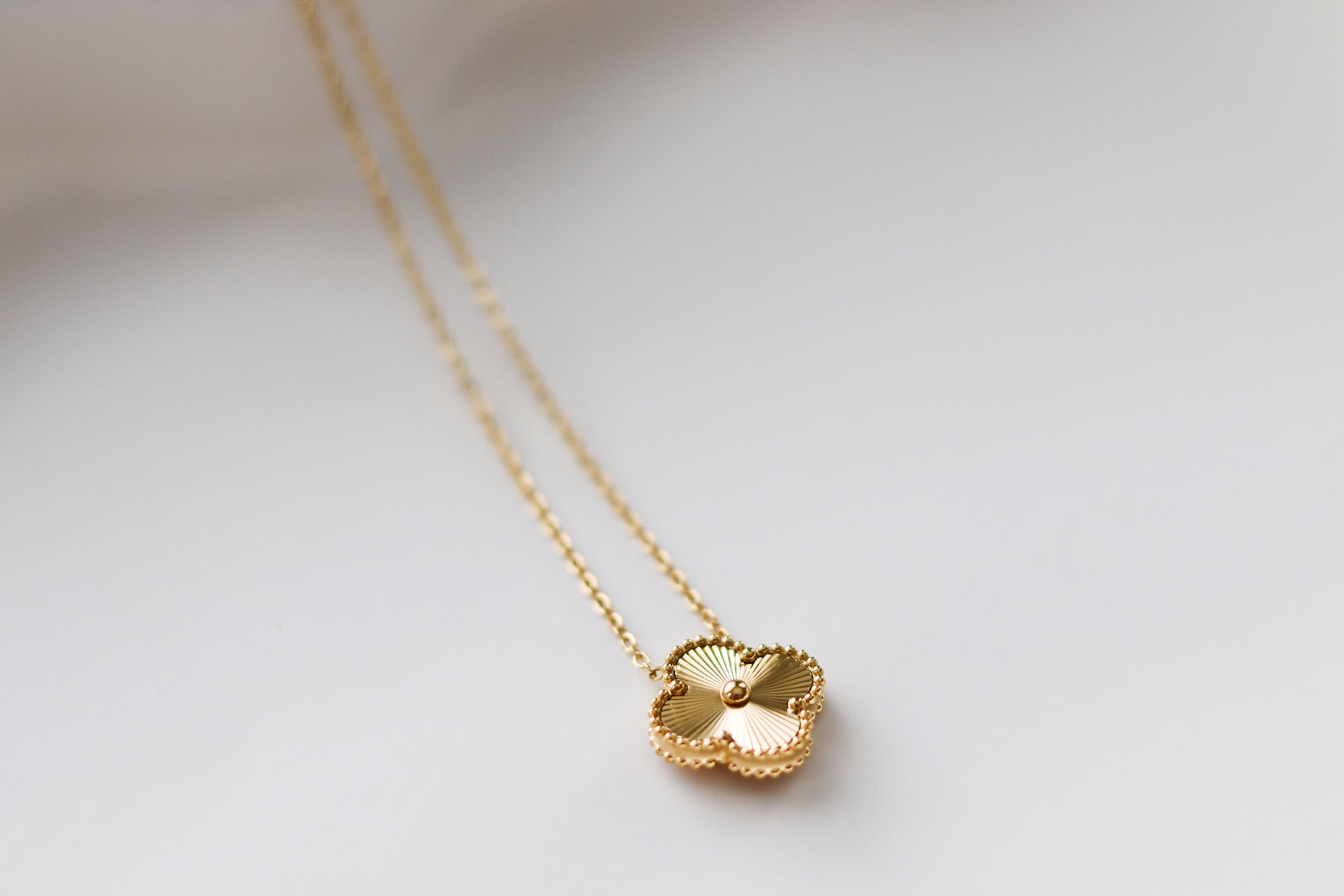 A timeless symbol of elegance and good fortune, the Phullan Vargi Clover Necklace features a sleek black stone pendant set in a delicate four-leaf floral design—beautifully inspired by the iconic Van Cleef & Arpels motif. Crafted on a high-quality gold-plated chain, this piece is tarnish-free, water-resistant, and safe for daily wear. Whether you’re dressing up or down, it adds a touch of understated luxury to every look.