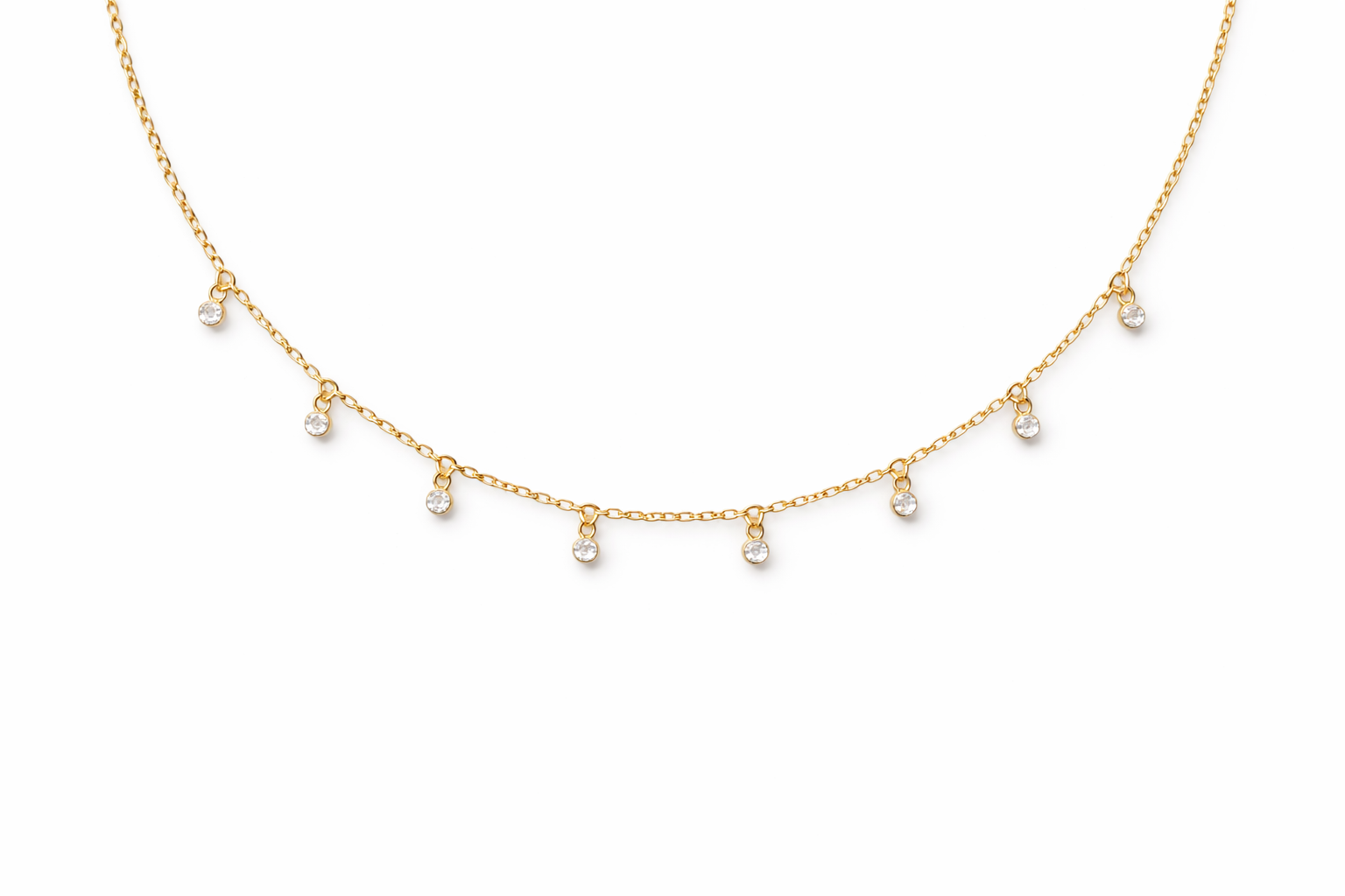 Elevate your everyday elegance with our TaraDainty Gold Necklace—a perfect fusion of modern minimalism and timeless South Asian charm. Delicately crafted with a fine 14-inch adjustable gold chain, this piece features brilliant zircon diamonds that capture the light with every movement, offering just the right touch of sparkle.