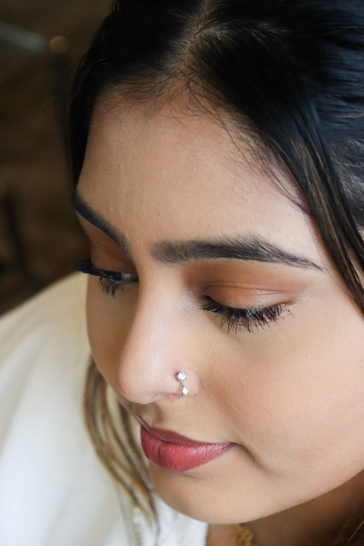The Do Tara Nose Pin brings together two shimmering diamond-set stars in perfect harmony. Crafted to sit gracefully on the nose, its fine gold silhouette glows with understated brilliance, celebrating the beauty of connection and balance.